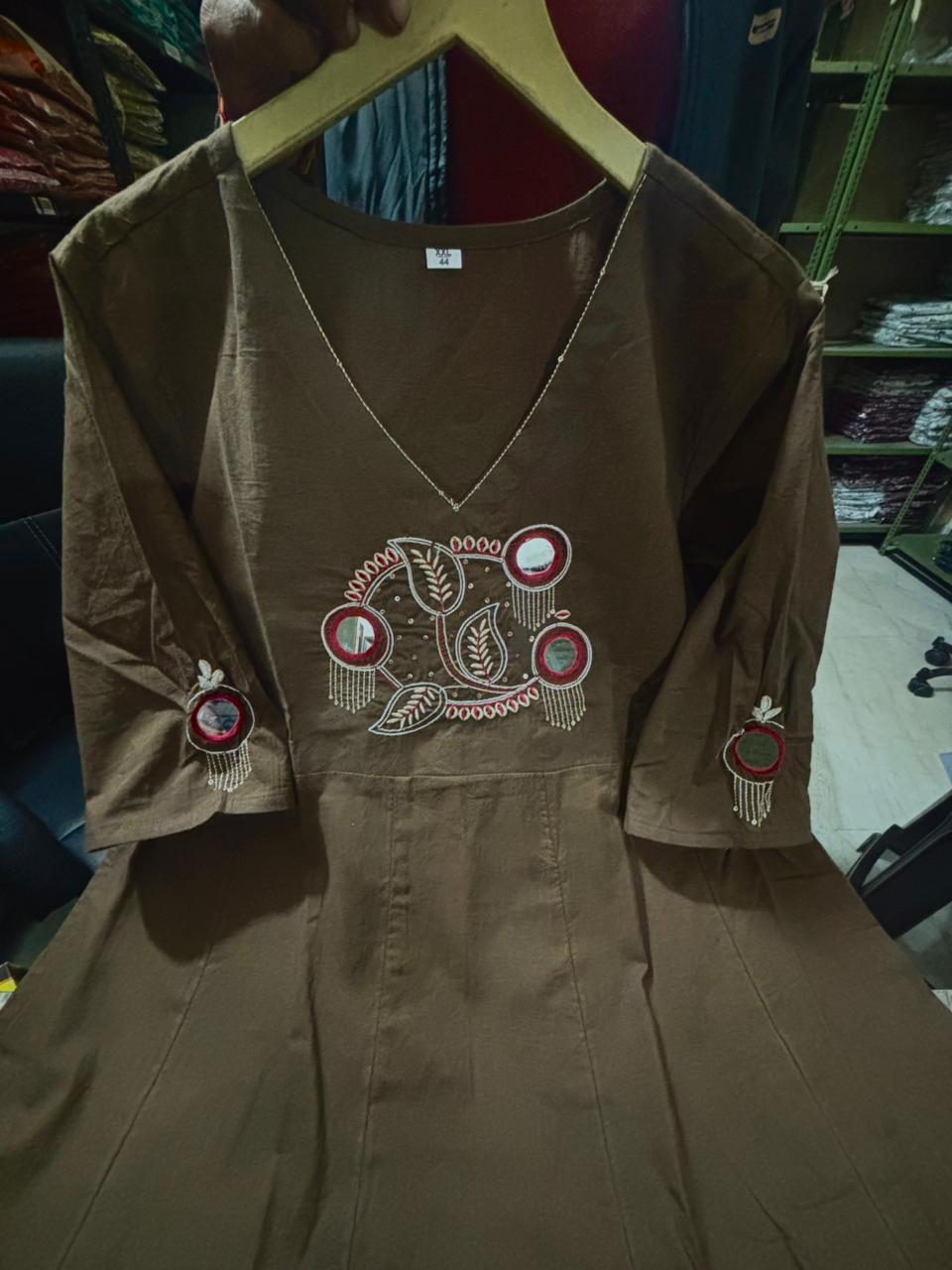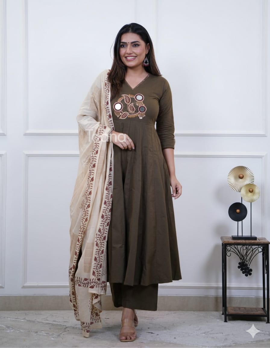 | Dupatta | Cotton Suit With pretty embroidery and Mirror work, sequence work on yoke and seeleve |